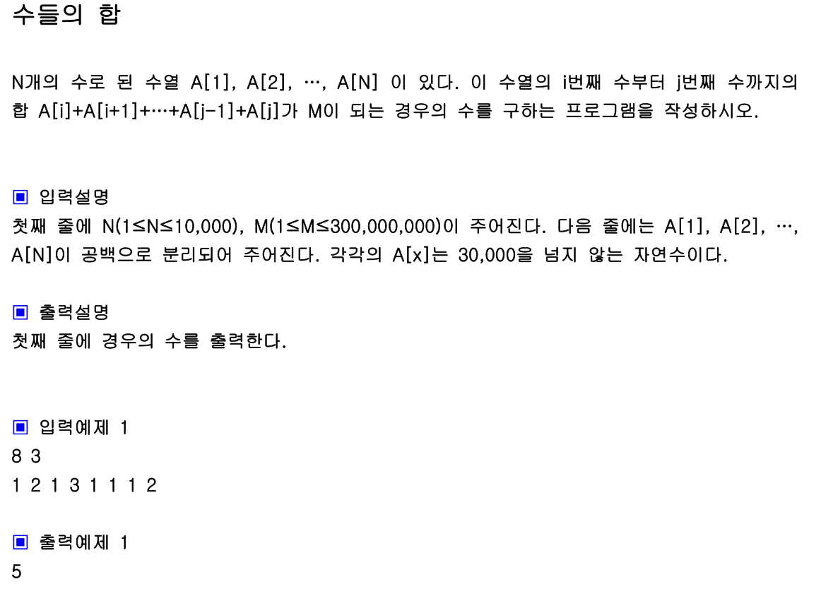 입력값 N(입력 개수) M( i~j까지 합)