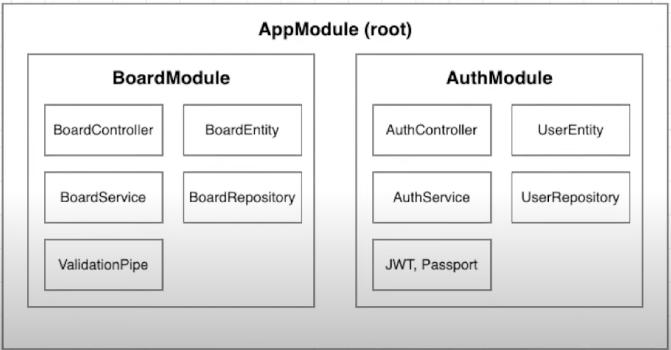 방금 생성한 boardModule을 사용하기 위해서는 루트 모듈인 app.module.ts에 등록해주어야 합니다.