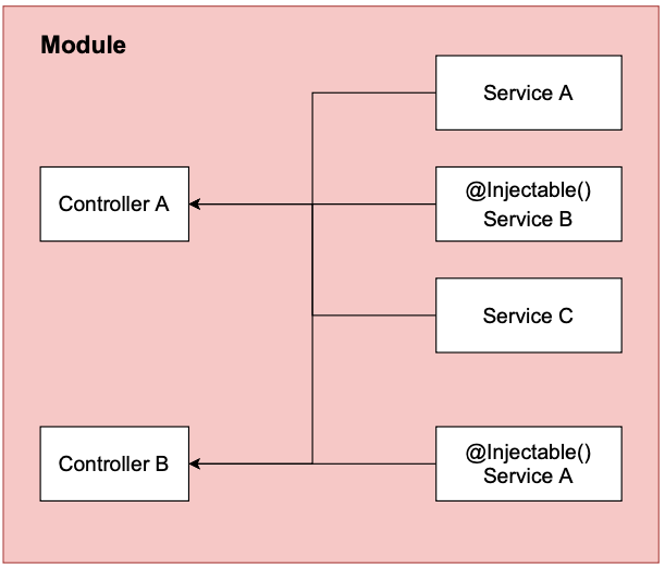 @Injectable 데코레이터로 감싸져서 모듈에 제공되며, 이 서비스 인스턴스는 애플리케이션 전체에서 사용 될 수 있다.