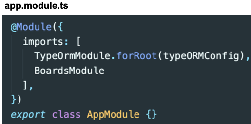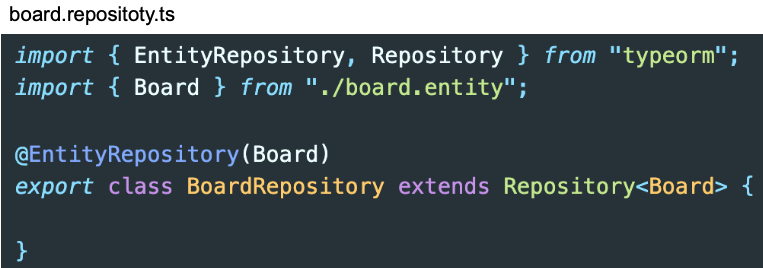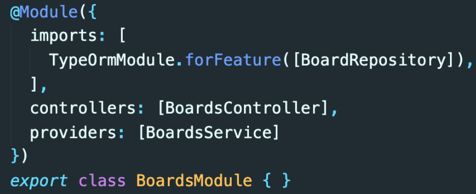 3. 생성한 Repository를 다른곳에서도 사용할 수 있기 위해서 (Injectable) board.module에서 import 해줍니다.