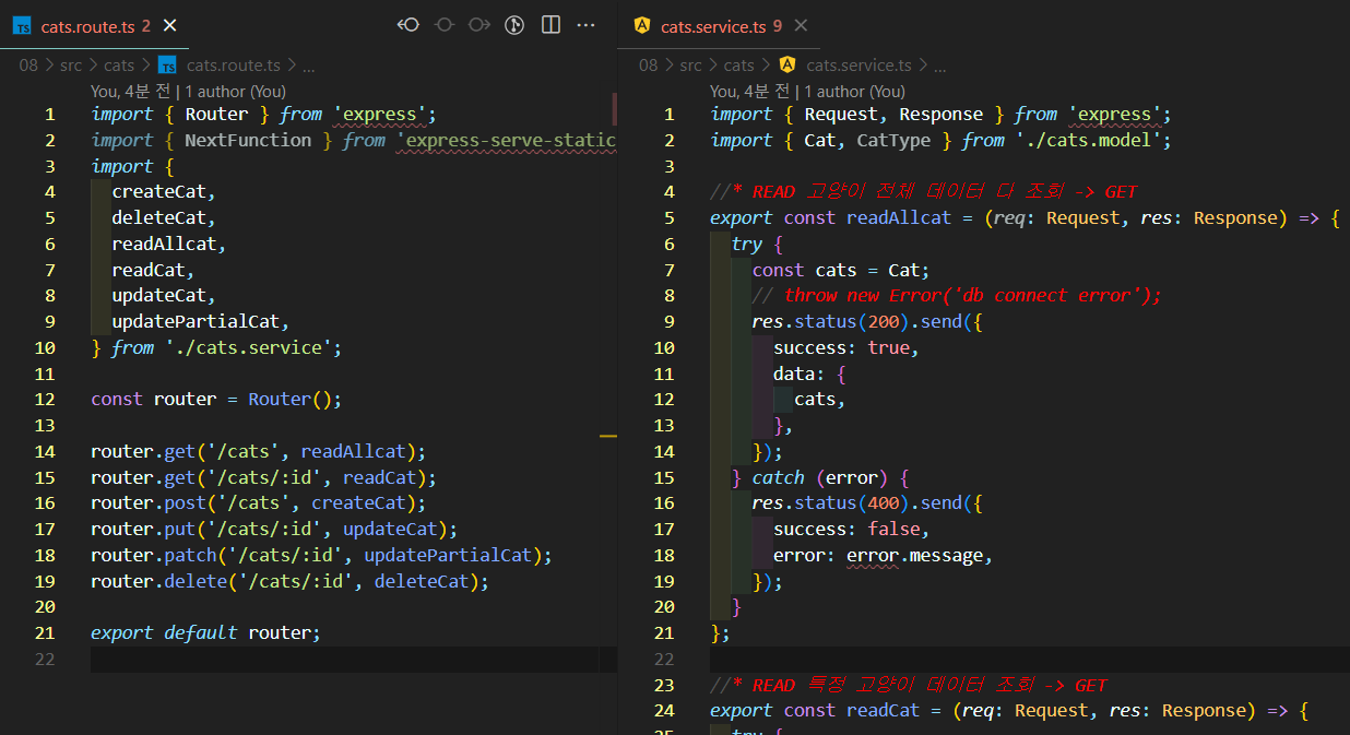 라우트에 서비스패턴을 적용=> 서비스를 분리 하여 가독성과 유지보수를 down