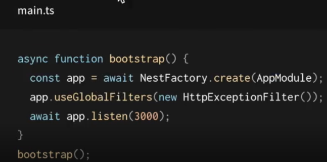 nest자체적으로 에러에 대한 응답과 httpException를 사용해서 직접 인자로 메세지를 넣어준 경우를 처리 해 줄 수 있다.