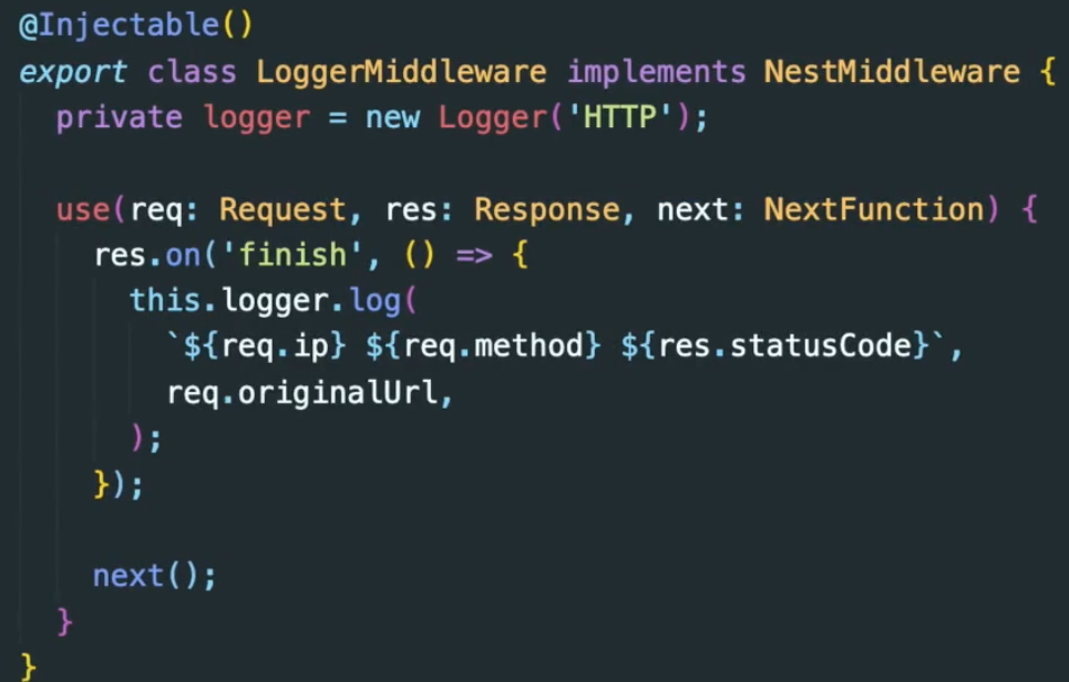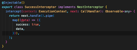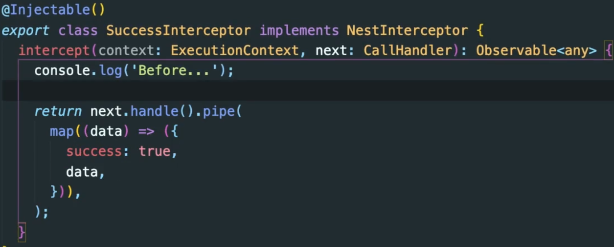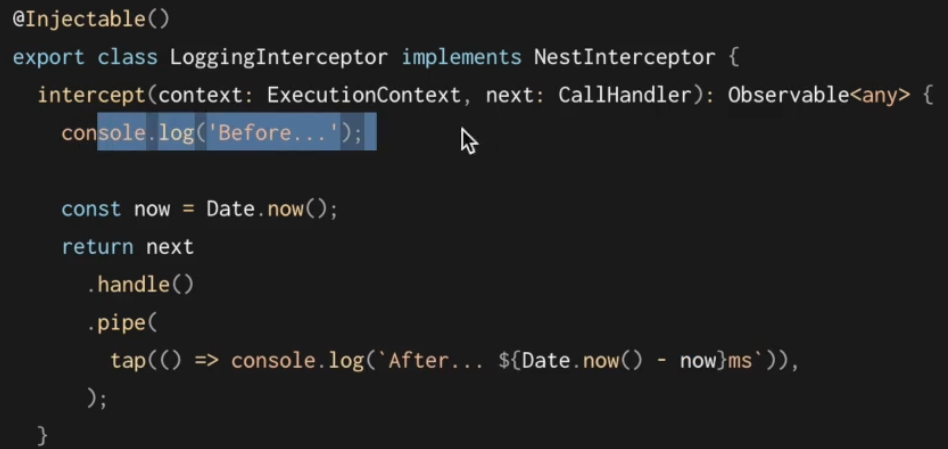 인터셉터는 @Injectable() 데코레이터로 주석이 달린 클래스이다.