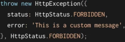 이라고 에러 메세지와 status code를 인자로 nest에서는 주로 에러를 던진다.
