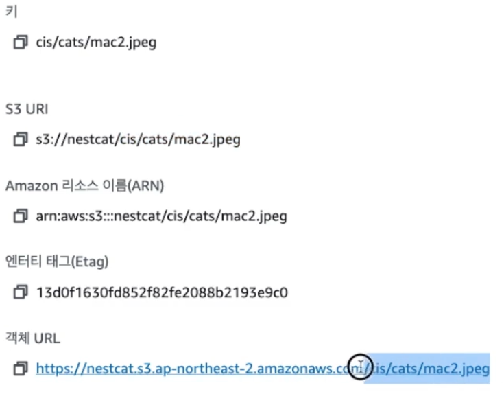 그리고 그 객체의 url을 확인할 수 있고 이 url을 사용해서 프론트가 사진을 웹에 띄운다.