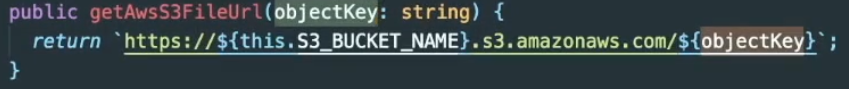 ==> objectKey(파일이 어디저장되어 있는지알려주는) 를 받아 전체 url 를 제공해주는 함수이다.