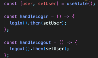 login과 logout에 대한 정보를 state에 저장을 안해도 되고 그저 명령형 함수로만 작동을 하면 된다. !