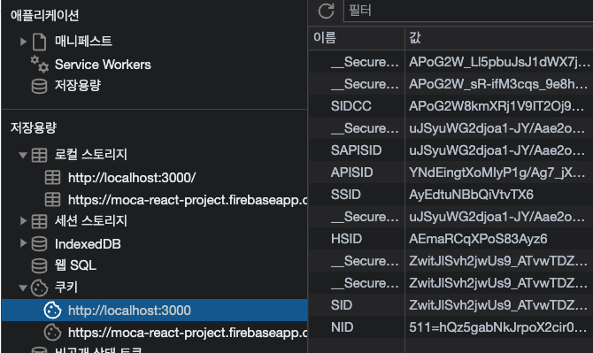 개발자 도구의 쿠키를 보면 로그인한 정보도 확인할 수 있다.