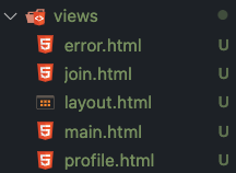 /profile /join / 총 3개의 페이지로 구성 및 템플릿 엔진에서 사용할 4개의 변수 res.locals로 설정