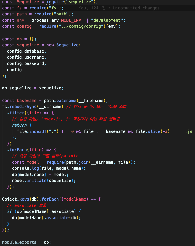 모델의 index.js 작성