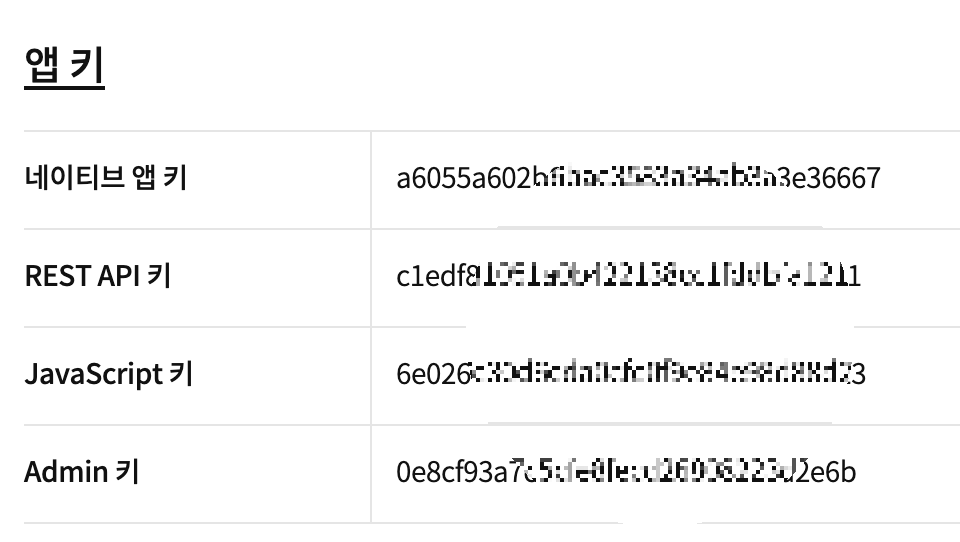 생성한 NodeMocaBird앱으로 들어가면 앱 키가 보입니다.
