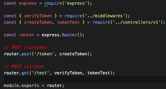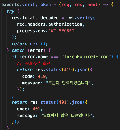 그 후 모든 라우터에 verifyToken 미들웨어를 넣어 클라이언트에서 보낸 쿠키를 검사한 후,