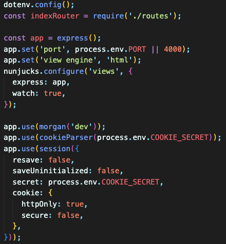 사용하지 않는 미들웨어는 걷어내고 최소한으로 app.js를 구성