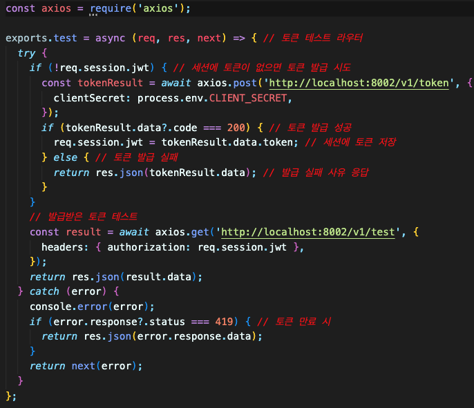 GET /test 라우터는 NodeCat 서비스가 토큰 인증 과정을 테스트하는 라우터입니다.