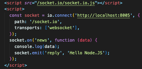 클라이언트에서도 이 경로와 일치하는 path를 넣어야 합니다. 연결 후에는 이벤트 리스너를 붙입니다.