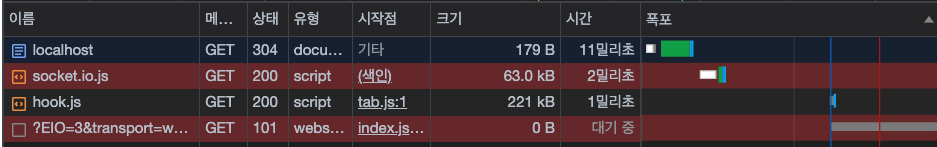 Socket.IO는 먼저 폴링 방식으로 서버와 연결을 수립합니다.