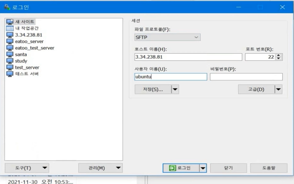 사용자 이름은 ubuntu로 고정이다.