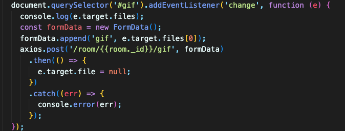 POST /room/{{room._id}}/gif 주소에 상응하는 라우터를 작성합니다.