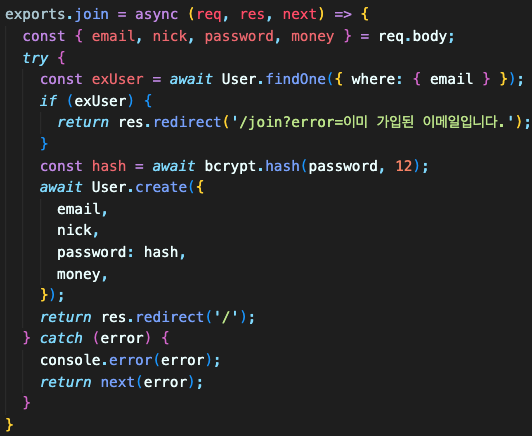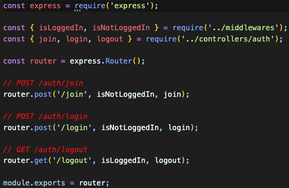 라우터는 GET , GET /join, GET / good, POST / good으로 이뤄져 있습니다.
