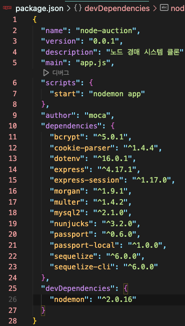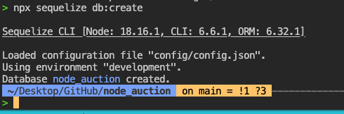 "nodeauction" 데이터베이스를 생성해야 하므로 config.json을 데이터베이스에 맞게 수정하십시오.