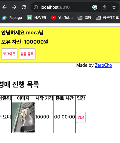 GET /는 메인 화면 을 렌더링합니다. 렌더링할 때 경매가 진행 중인 상품 목록도 같이 불러옵니다.