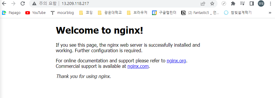 이렇게 3개 모두 설치를 한 후 나의 IP(aws 상에서 할당받은 ip에 들어가보면