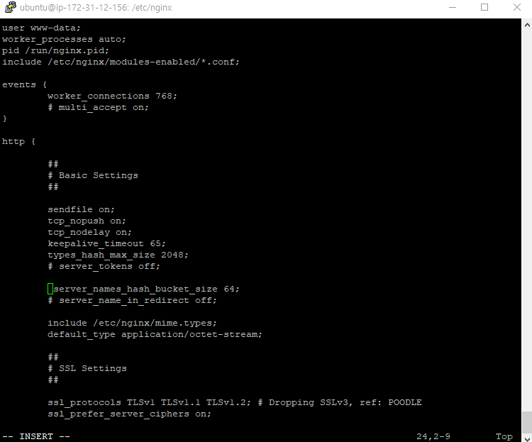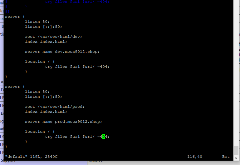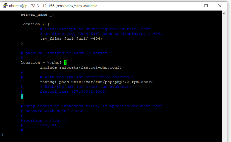 다시 /etc/nginx/sites-available에 위치한 nginx 설정 파일로 들어간다.