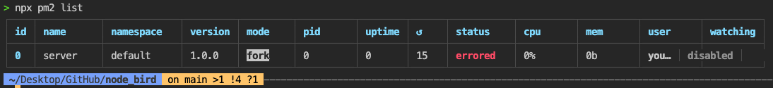 npx pm2 kill로 서버를 종료한 뒤 변경된 명령어를 사용해봅시다.