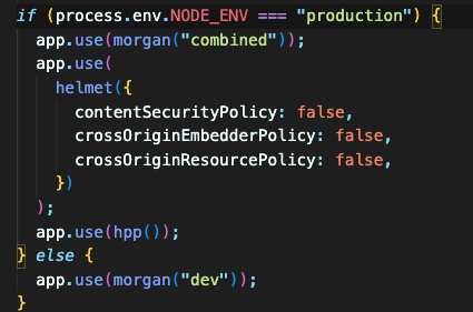 다만, 때로는 보안 규칙을 너무 엄격하게 적용해서 서비스가 제대로 돌아가지 않는 경우도 있으니, 예제에서 contentSecurityPolicy, crossOriginEmbedderPolicy, crossOriginResourcePolicy를 false로 했듯이