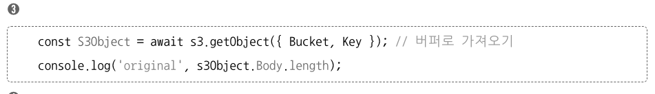 event 객체로부터 버킷 이름(Bucket)과 파일 경로(Key)를 받아옵니다.