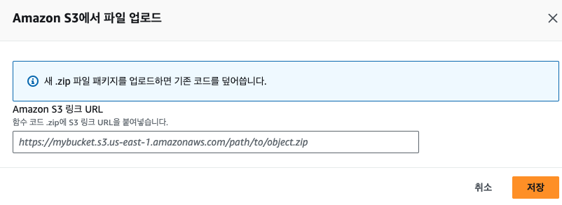 Amazon S3 링크 URL은 https://버킷명.s3.ap-northeast-2.amazonaws.com/aws-upload.zip과 같은 형식으로 넣습니다.