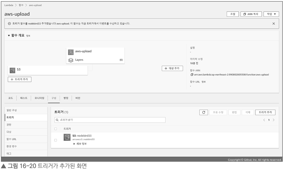 zip 파일을 업로드한 후 트리거 추가 버튼을 누릅니다.