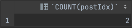 그러면 다음과 같이 postIdx가 2와 3이 반환되는데, 반환되는 postIdx의 갯수를 COUNT함수를 이용하여 센다.