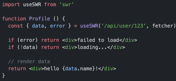 이는 useSWR('/api/user/123’, fetcher)를 여러 컴포넌트에서 사용하여도