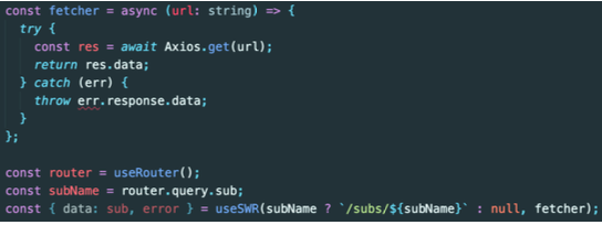 useSWR로 React Hook으로, 주된 인자로 key와 fetcher가 있다.