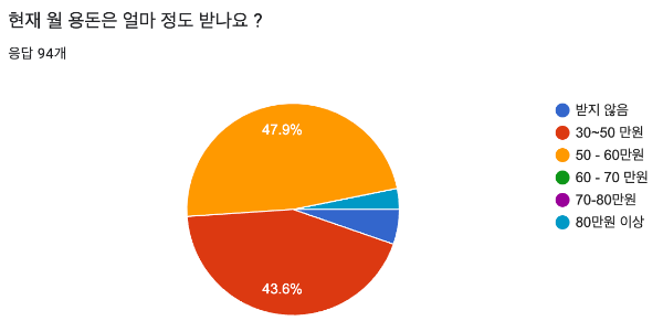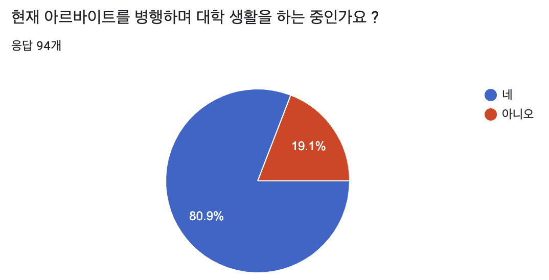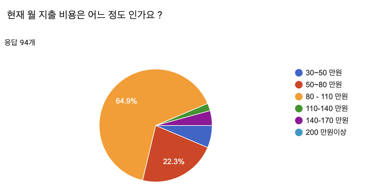 초반 3개의 질문은 대부분의 학생들이 아르바이트를 병행하며 생활을 하고 용돈을 받는 금액보다 지출 금액이 더 높게 나타난 것을