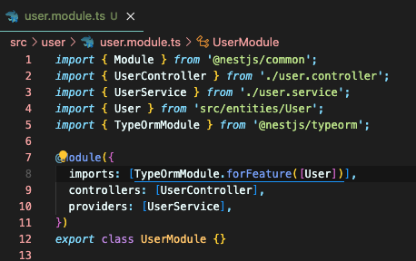 각각의 모듈에서 typeorm의 user 엔티티를 임포트를 해야 했었다.