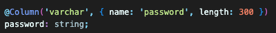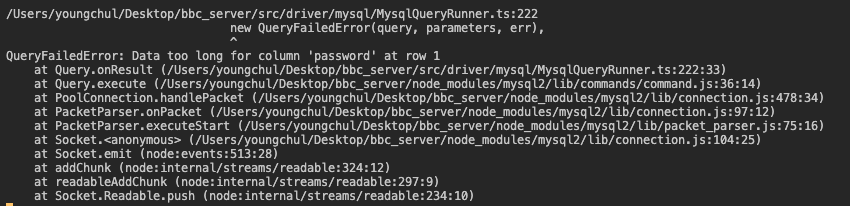 데이터 베이스에 해쉬한 비밀번호 값을 저장하려고 하니 에러가 남.