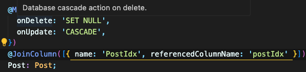 댓글과 게시물간의 일대다 관계를 설정 중에 PostIdx가 중복 열이라고 에러가 발생하였따.