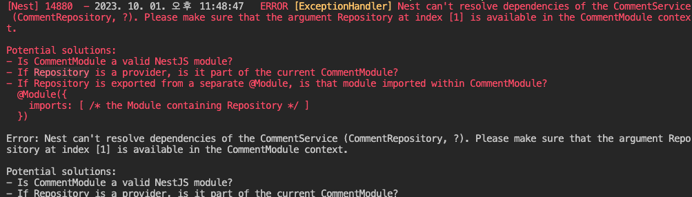 각 모듈간의 provider와 import, export 때문인줄 알고 꽤나 삽질을 하였다...