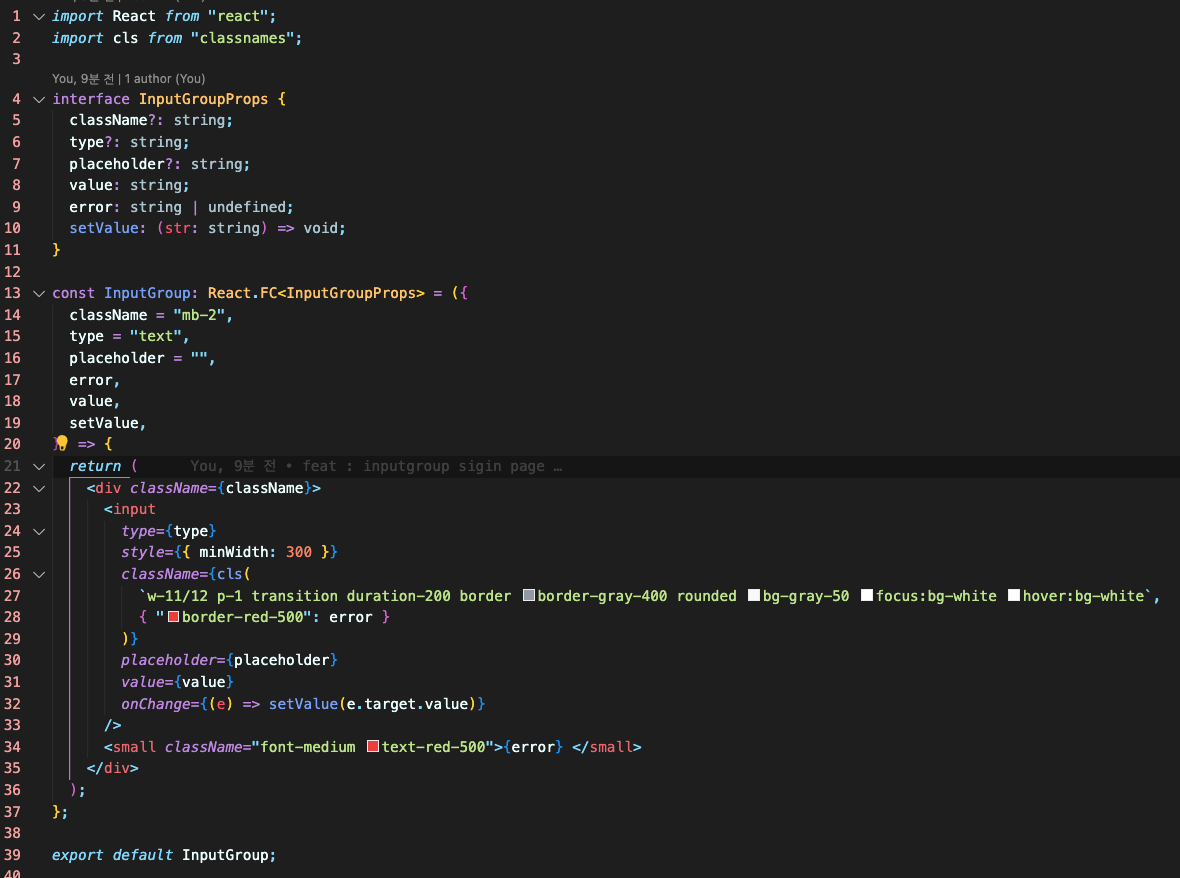위 코드는 입력 폼을 위해 컴포넌트를 분리해서 따로 만들었다.