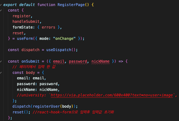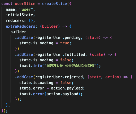 userslice를 사용해 앱의 상태를 관리할 RegisterPage 컴포넌트를 수정해 보자.