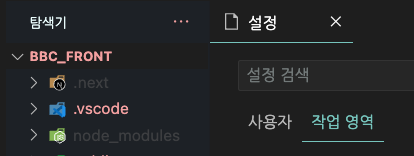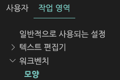 1. vscode 설정의 작업 영역 들어가기