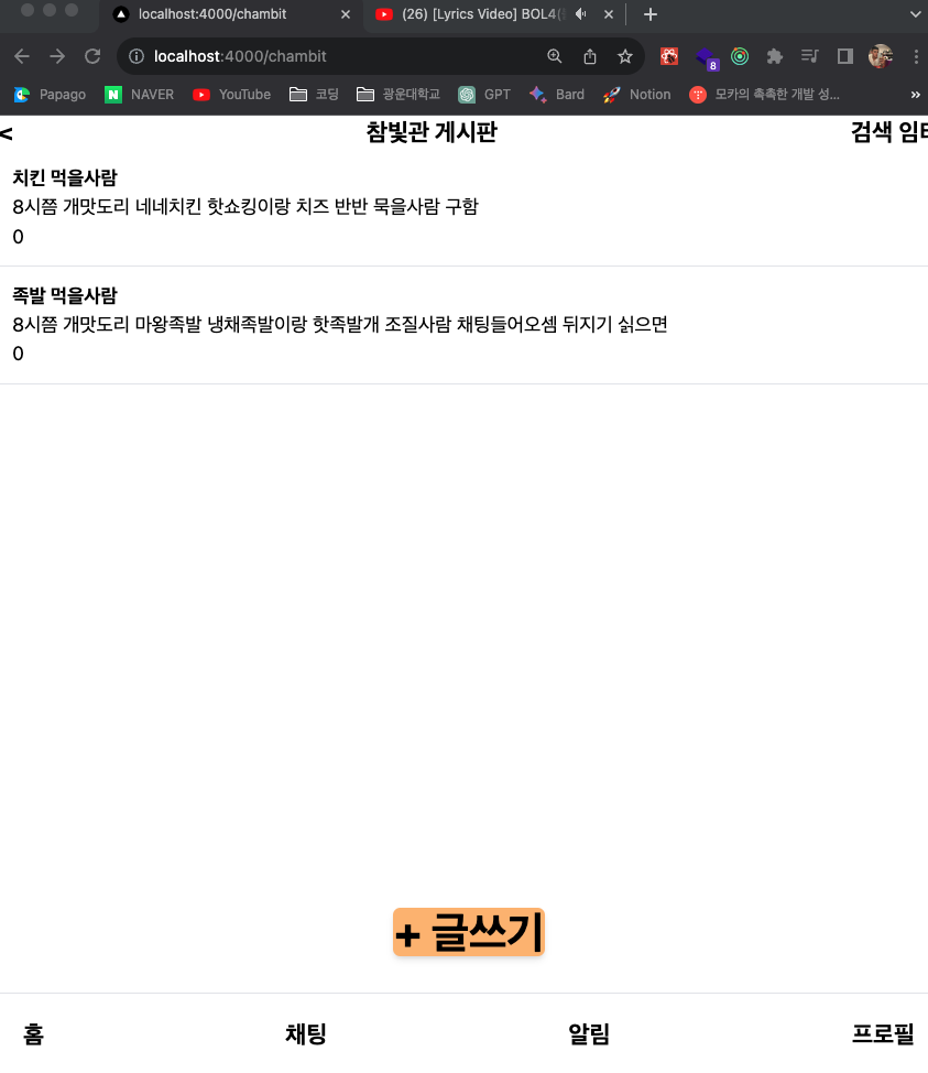 각각의 게시판 마다 위와 같은 코드를 통해 데이터를 불러와서 조회를 한다.