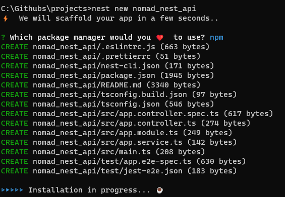 nest new [project-name] 로 새로운 프로젝트를 만들어준다.