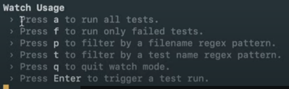 npm run test:watch 를 하면 모든 테스트 파일들을 찾아내서 거기서 무스 ㄴ일이 일어나는지 관찰한다.