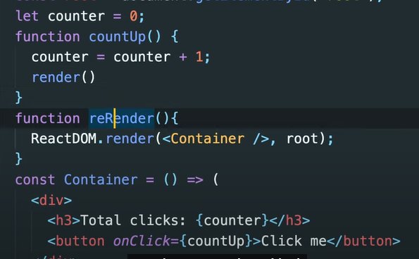 그렇게 해야 React JS에게 우리가 event listener를 생성한다고 알려줄 수 있어