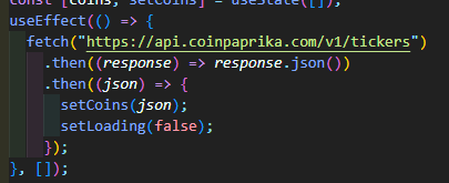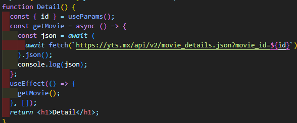 그리고 useEffect를 써줄거야 (위와 같이 작성) 이 url을 공략할거고 id 부분을 이렇게 수정해줘 (위와 같이 작성)