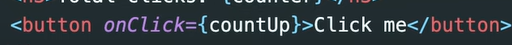 여기다 onClick이라고 적으면 돼 그럼 button이 클릭될 때마다 호출될 function을 여기에 작성할 수 있지.