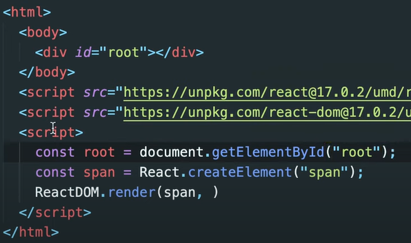 React를 설치하기 위해서는 두 개의 javascprit 코들르 import해야한다.